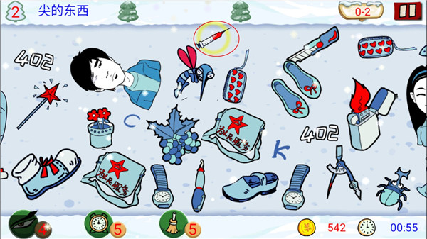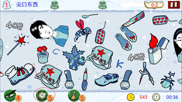 2、如果一个关卡中,上面出现要求找出的物品为2-3个的时间,在过关卡的时候可以一起找,不要一个找完了之后再找另外一个物品,拉动屏幕也会浪费一定的时间。