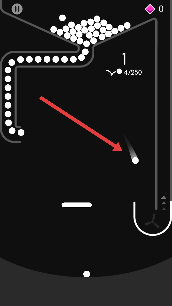 2、游戏开始后,白色小球沿轨道下落,操控下方挡板,引导小球滚动,初步积累分数。