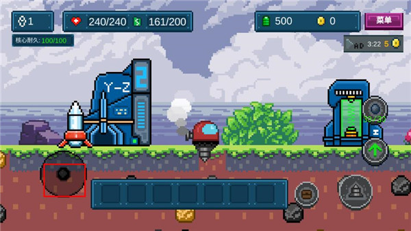 2、将移动杆往下拉,点击右边的钻头,就可以进入地底世界。