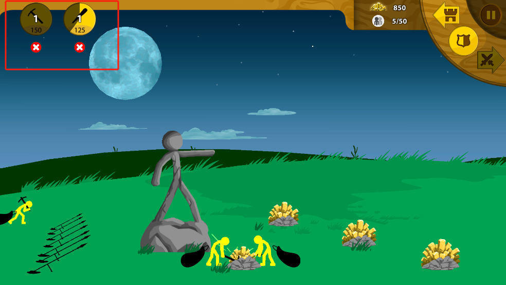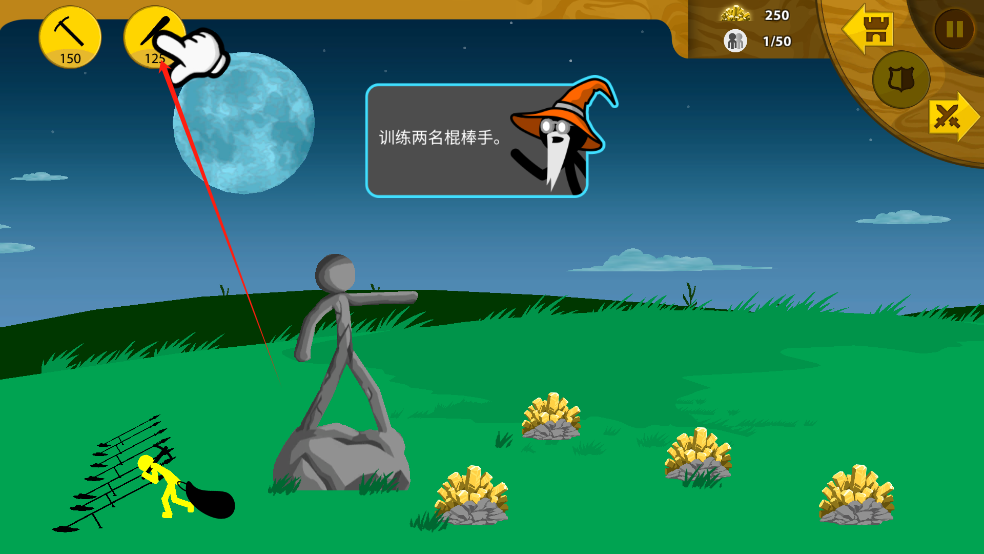 6、尽可能多的训练矿工和棍棒手,让他们抵抗敌军的攻击摧毁雕像