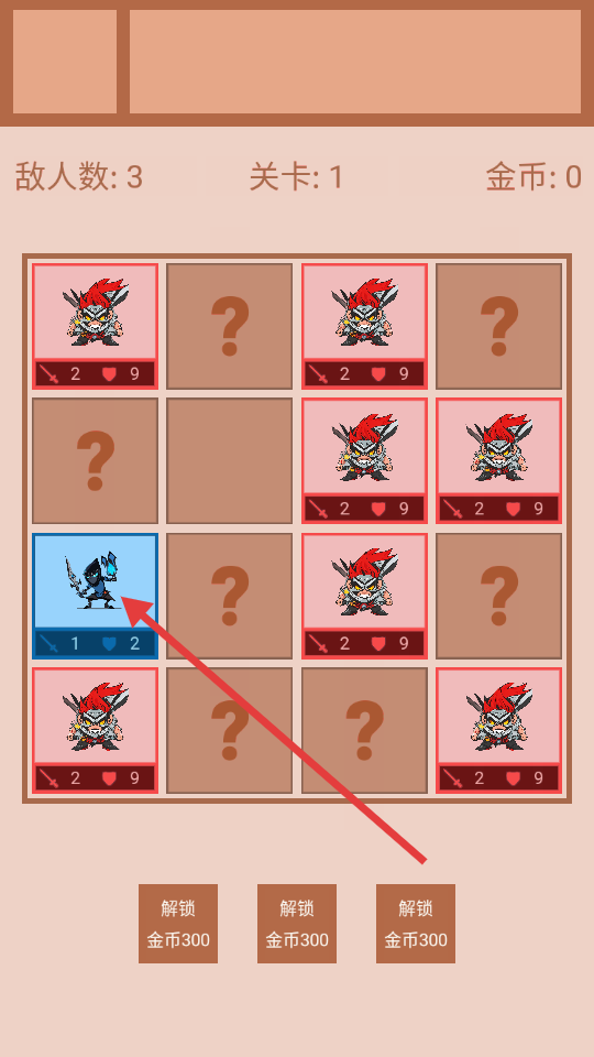 1这种游戏机制设计巧妙,既增加了探索的乐趣也带来了策略的考量。点击问号格子随机翻牌的形式给玩家带来了一定的不确定性与惊喜感,而红色英雄加入队伍、蓝色怪物触发战斗的设定则让每一次选择都充满了变数和挑战性,极大地丰富了游戏体验。