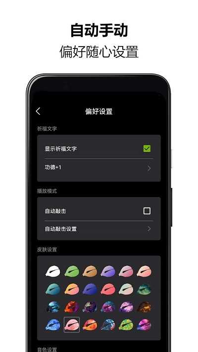 3、【专业音色】更换木鱼音色,10种音色可免费更换;