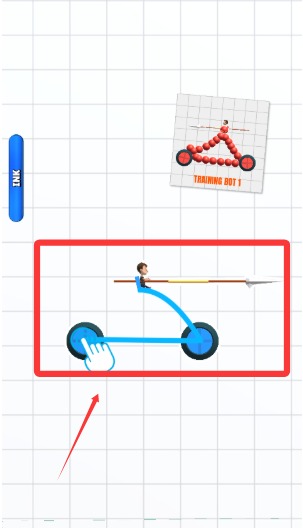 1、绘制环节,玩家进入编辑界面后,用手指在画布上涂抹墨水,勾勒车轮、车架、武器等部位,完成创意战车设计。