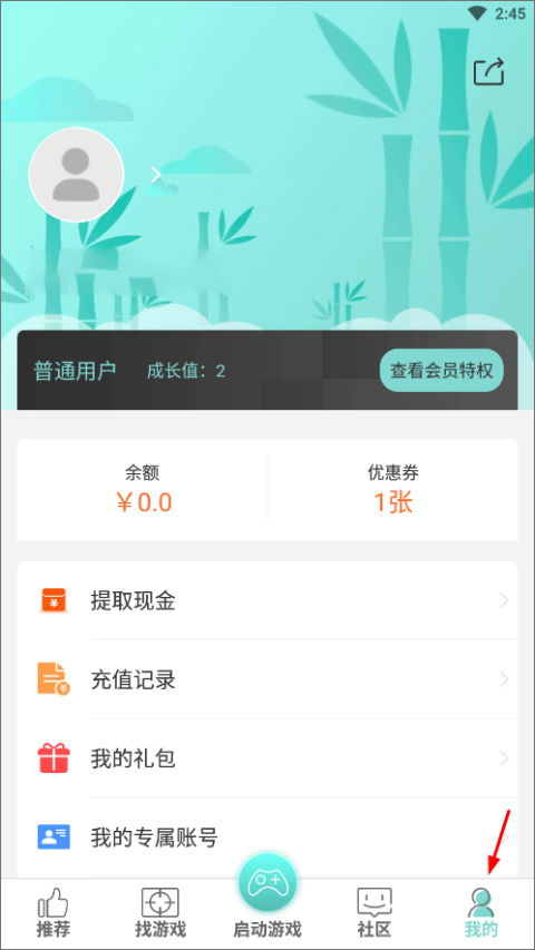 1、第一步,打开游戏鱼app,接着点击右下角的“我的”。