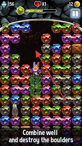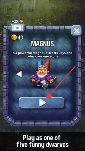 3、操控矮人在宝石堆中移动,通过消除宝石获取金币钥匙,提升角色能力。