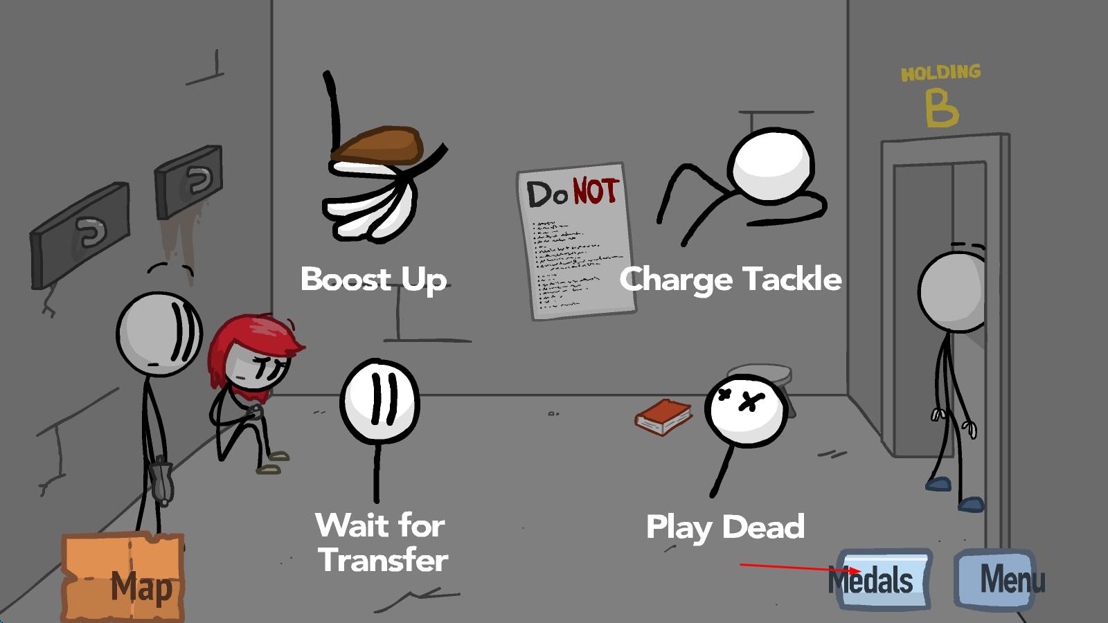 1初次进入游戏时,认真听取老人的提示,开始你的越狱之旅。从最初的决策做起,例如选择“boost up”,控制火柴人向上攀爬,展开探索。