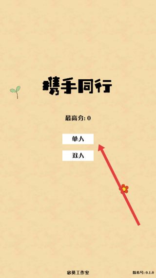1、在主界面中,选择【单人】模式开始游戏。随后,你可以控制角色(以蓝色箭头指示)进行移动,并收集各种物品(例如花朵)。