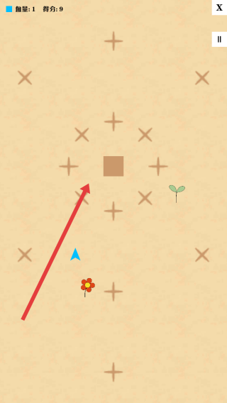 2、游戏中,引导角色向箭头指向的棕色方块移动,可能触发特殊效果或加分项,提升得分。