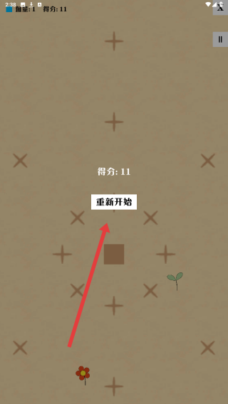 3、结算界面,若得分未达预期,点击【重新开始】,调整移动策略,争取更高分数,完成挑战。