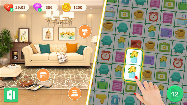 装扮小屋游戏是一款富有创意的室内设计游戏,玩家可以化身成为设计师,根据个人品味和偏好进行独特设计。通过改变家具布局、更换装饰风格等手段来实现个性化定制,同时还需要通过三消玩法消除方块以获得更多的家居用品来进行创作,充分展现你的设计才能。还在犹豫什么呢?赶快下载体验吧!