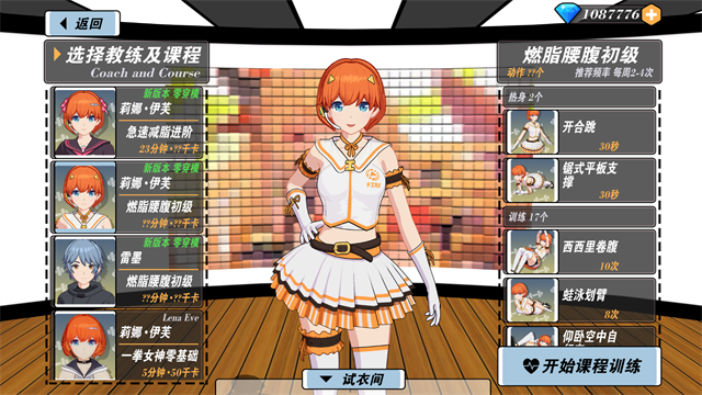玩家可以通过完成健身来进行养成,解锁不同的教练、服装和课程。