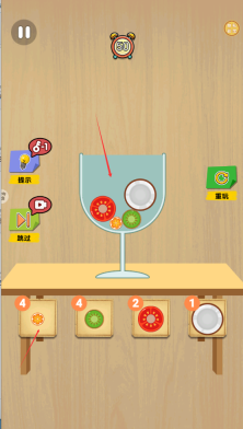 3、隐藏道具系统暗藏玄机,如空间压缩器可临时缩小水果体积,这类特殊元素需要玩家在适当时机主动触发,为关卡解法增添变数。
