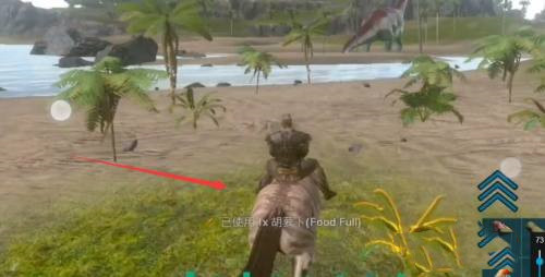 2、走到马的旁边后,我们点击胡萝卜给马吃;