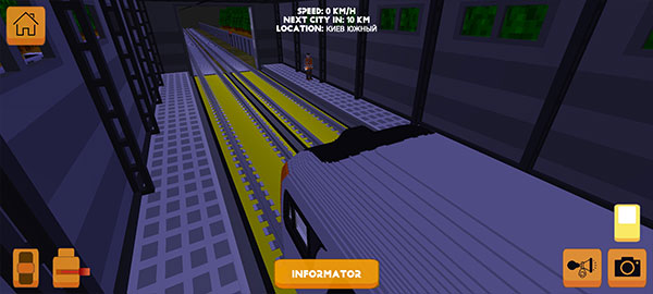 5、右下角相机可以切换不同视角查看火车的各个部位,到站可以点击相机上方的黄色按钮打开车门,开始行动吧!