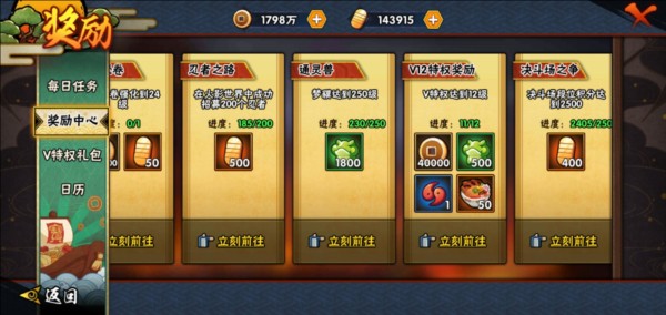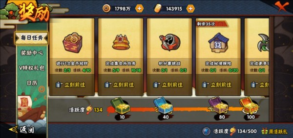 13、升级密卷及招募忍者达到一定数量后,可领取相应金币奖励,最高可达500金币。