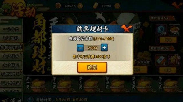 传说的忍者章:24w铜币;24w铜币+2普招券;300金币+100体力