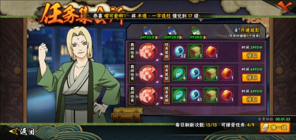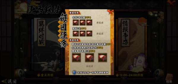 燃烧的木叶章:12w铜币;12w铜币+2普招券;200金币+100体力