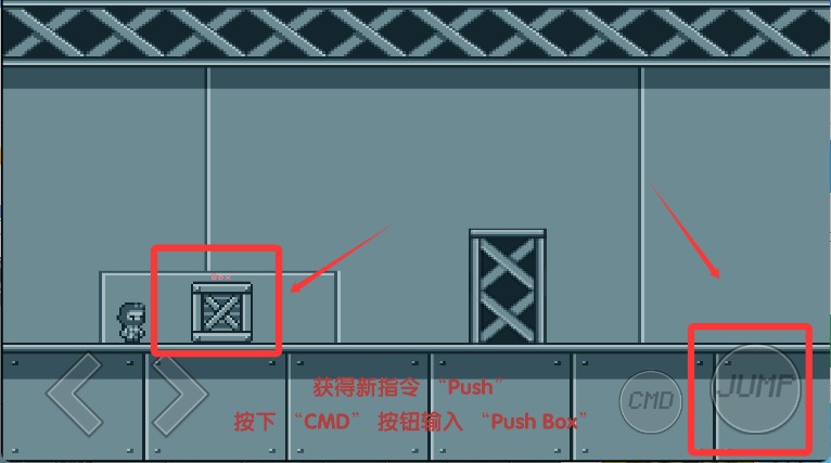 2、“CMD”指令键位操作为游戏带来了一种类似编程的互动方式,玩家只需按照界面提示输入代码,就能控制英雄进行跳跃、移动或激活机关,巧妙地将编程逻辑和闯关的乐趣融合在一起。