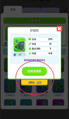 1、点下方绿色帽子进入兵种界面,查看角色卡片详情,需等级达标才能解锁商店购买新单位。