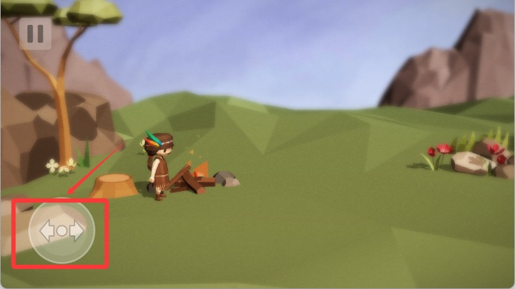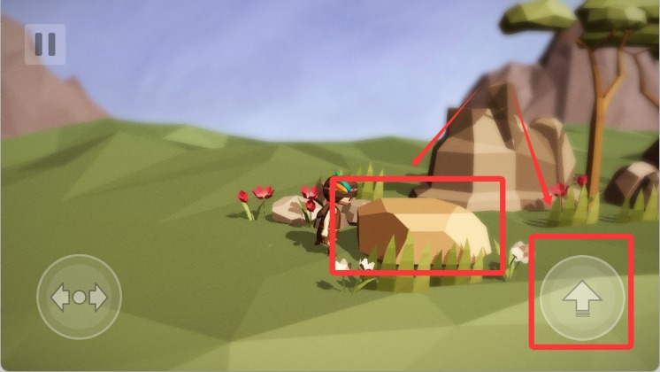 1、操作界面简洁明了,左侧的摇杆用于控制移动,可以让小姑娘向前、后、左、右行走;右侧的跳跃键则帮助她踏上石台或躲避隐藏的危险动物。
