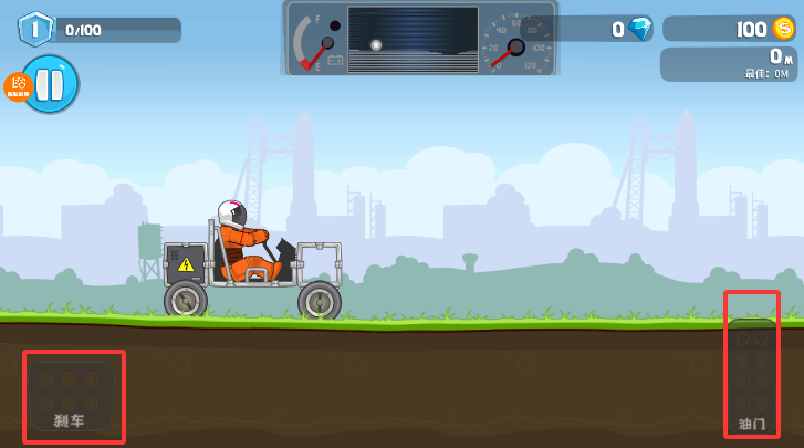 2、左下角的控件用于车辆的前进和后退,右下角的油门则用来控制车辆的加速和减速。