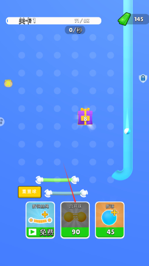 1、轨迹预测线显示球体未来运动路径,辅助玩家预判最佳弹射角度,降低操作试错成本。