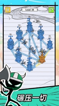游戏玩法巧妙融合休闲合成、英雄养成与图鉴收集元素。玩家在闯关过程中积累的金币,可用来解锁各类兵种皮肤。游戏设有多个难度模式,关卡设计丰富多样,能让你尽情体验无限挑战与乐趣。操作流程简单易懂,只需通过拖动或切断操作,就能发兵出征。游戏的主要目标是占领所有城堡,在“占下那座塔”玩法里,不同颜色代表不同阵营,你需要将其全部歼灭。另外,千万记得招募英雄,开启征服塔防之旅!