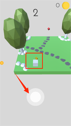 2、你需要通过下方的按钮控制方块移动,金色代表金币,靠近它可以收获。