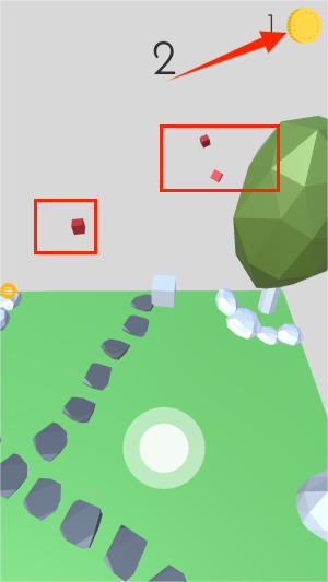 3、收获的金币会显示在右上角,红色的方块是需要躲避的。