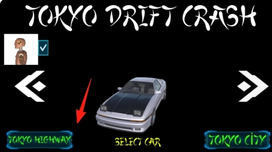 1在选择场景的界面中,点击【箭头】所指向的“TOKYOHIGHWAY”,以此赛道开始游戏。