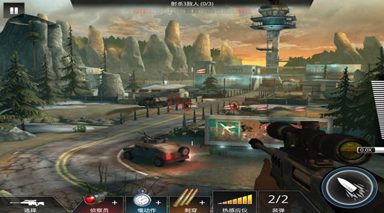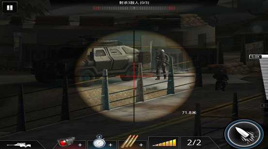 没错,这也就说明了,该关卡除了有两个目标敌人外,还有另外一个敌人,那就是狙击手了(万恶的狙击手,这也是另该关卡难题提升的原因。那么,我们要怎么完成任务呢?