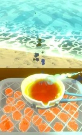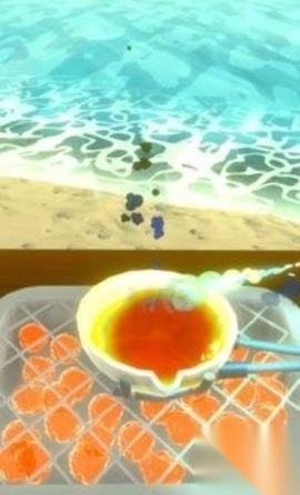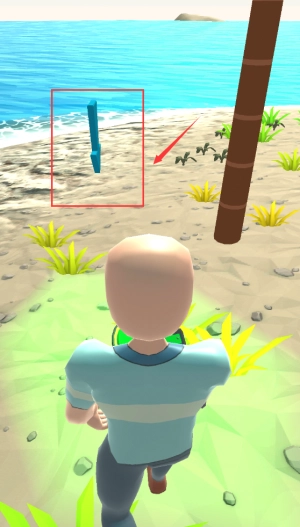 3、在沙滩上拾取蓝色道具,通过探索海岛来获取资源。