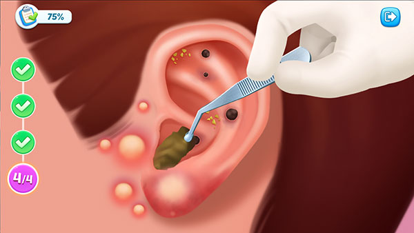 6、完成这一系列操作后,耳朵便清理干净了,接下来就能解锁医院的新区域。