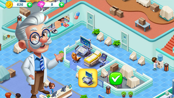 4、装饰你的医院,你可以设计不同风格的设备来打造你自己的医院;