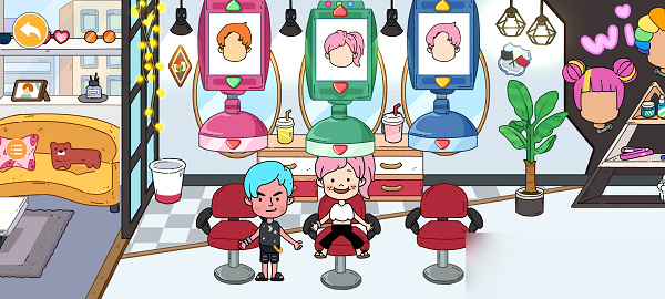 2、比如来到理发屋之后可以对角色进行装扮投喂操作。