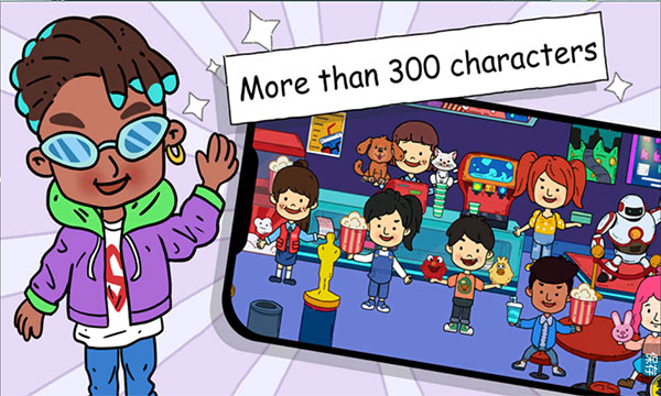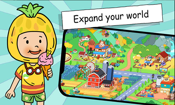 2、在丰富多彩的游戏世界里,可爱的卡通人物与各式各样的建筑物一一展现,玩家能够自由地进行探索。