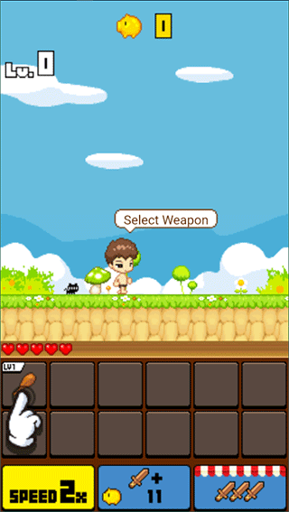 《Level Up》是一款别具一格的单人冒险小游戏,它采用2D卡通像素风格,使得画面独树一帜,看上去极为舒适。这款游戏的玩法也相当新颖,玩家在游戏里只需点击屏幕就能控制角色跳跃,通过滑动来升级武器,进而展开冒险战斗。在战斗过程中,玩家不断击杀怪物获取金币,随后利用这些金币持续提升武器等级。随着武器等级的提升,其伤害也会相应增加,凭借此方式便可消灭形形色色强大的敌人。