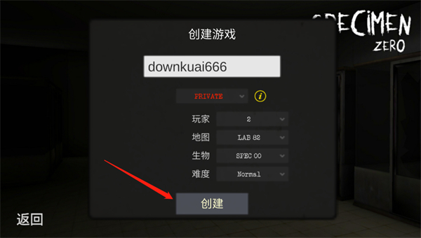 2、设置房间难度、玩家人数、地图、生物等各项内容后,填入房间名称即可点击创建