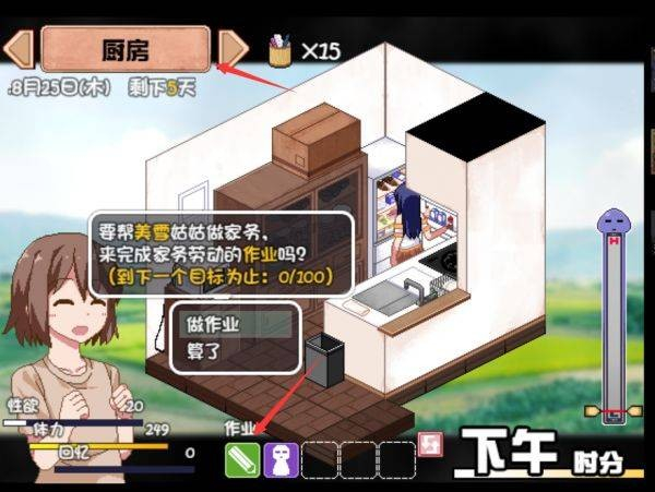 面对这种情况,玩家可以通过完成功课、家务等操作,当完成度到达100%后就会自动触发游戏剧情,从而解锁好感度的上限。