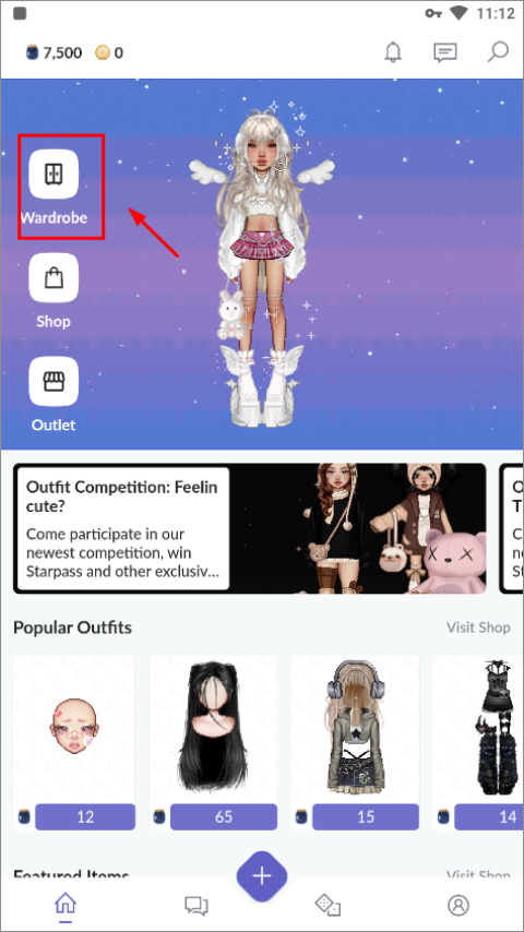 1、打开everskies手游最新版,进入游戏后,点击Wardrbe开始;