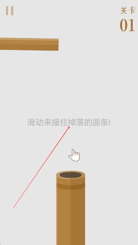 1进入游戏后,请密切关注屏幕上方。一旦面条开始下落,你需要通过滑动屏幕来控制竹筒左右移动,并提前预测面条因障碍物影响而改变的掉落路径。