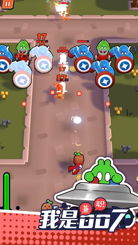 清新秀逸的画风,搭配简便易上手的操作玩法,无论你是在候车等待,亦或是排队时百无聊赖,都能随时随地畅快开局。不仅如此,每当角色成功升级,便能从众多补给中挑选,随机提供的补给资源,可自由组合搭配;每升3级还能获取一种新弹药。在游戏模式方面,“我是兼职007”采用常规的闯关游戏模式,后续挑战随着关卡数的增加,难度逐步提升。在此期间,你可以在“健身房”即“训练”中,提升角色的攻击力、防御力与生命值,还能通过穿戴装备,进一步强化角色的生存能力。如果有对上述内容感兴趣的玩家,可一定不要错过哦~