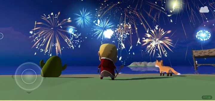 5、最后一个场景是放烟花,收集完烟花后,径直前往水晶门处放烟花,烟花似乎是持续循环燃放的(右上角的云朵图标可用于退出游戏)
