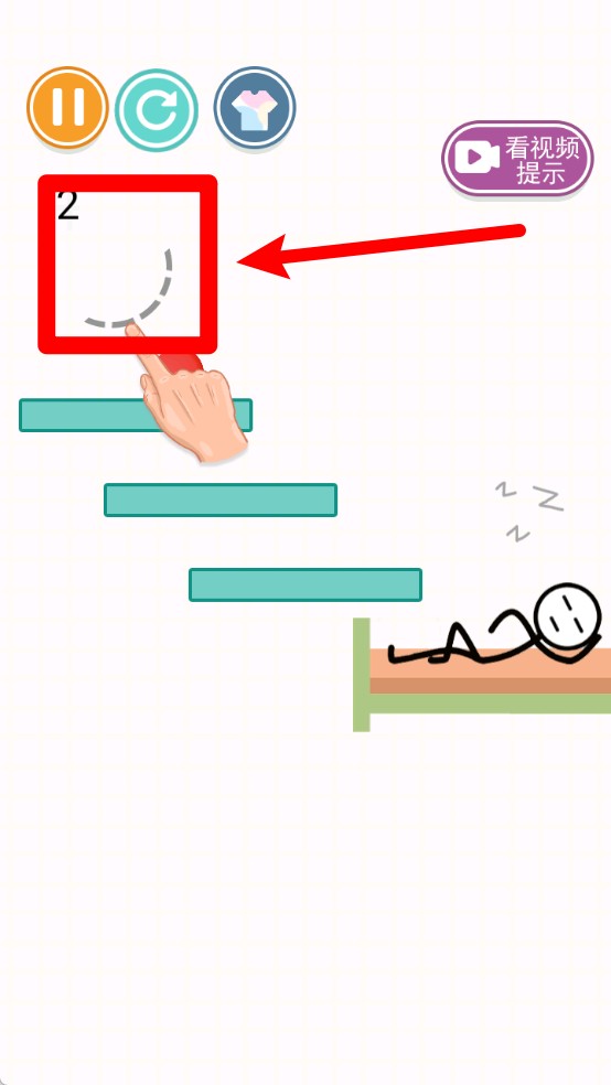 2.根据图中提示在指定区域绘制线条,引导球球滚动击中火柴人,唤醒成功即可顺利完成关卡。
