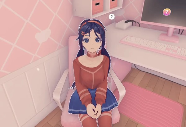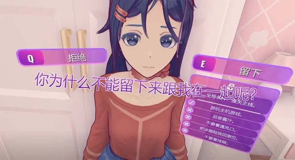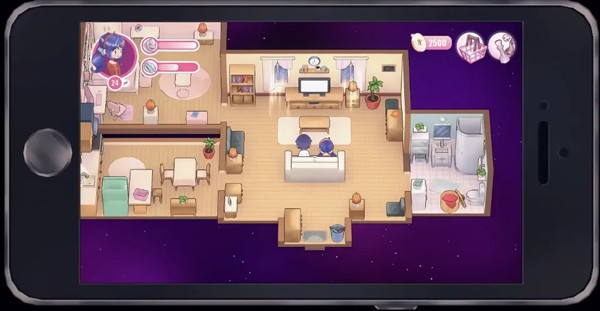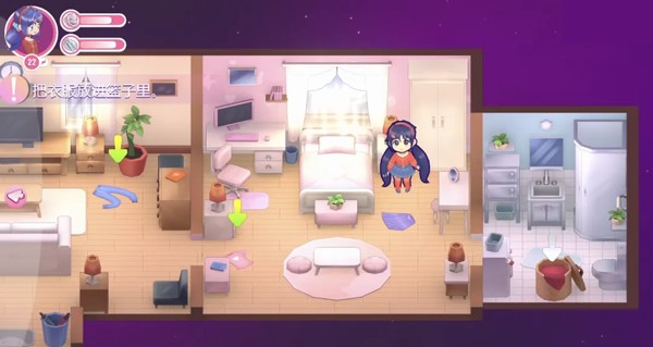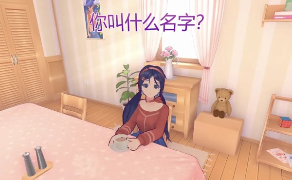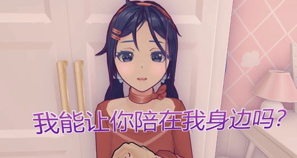 一个扎着双马尾、笑容甜美的3D小人美少女开开心心地朝你打招呼,然后露出羞涩的笑容,问你可以帮她收拾房间吗?