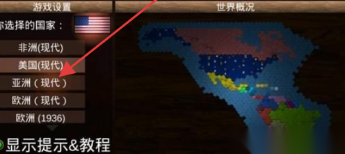1、选择国家:进入“游戏设置”界面,挑选一个国家(例如美国或非洲的某个国家),然后查看“世界概况”地图,以了解你的初始领土。