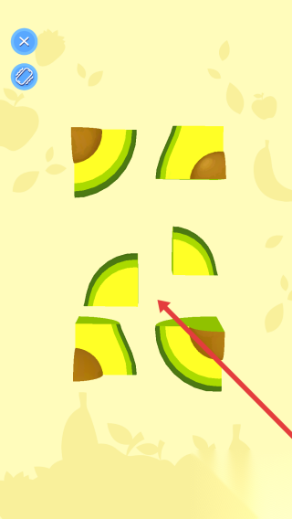 2、要仔细观察碎片的轮廓和位置,根据箭头指示调整碎片的方向,精确拼接,恢复牛油果的原貌。