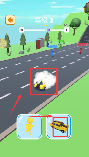 2、人车形态切换,创新性加入赛车与人类形态的即时转换机制。车辆可化身为奔跑角色,在狭窄或复杂路段灵活穿行。