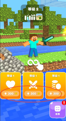 1在游戏的准备阶段,可以选择升级生命值的选项,通过消耗金币来提高角色的基础属性。攻击力和收益等级采用相同的增强机制。