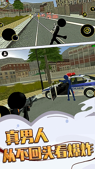 1. 游戏选用经典的火柴人形象,以3D画面呈现更为刺激的战斗场景,玩法上手轻松。